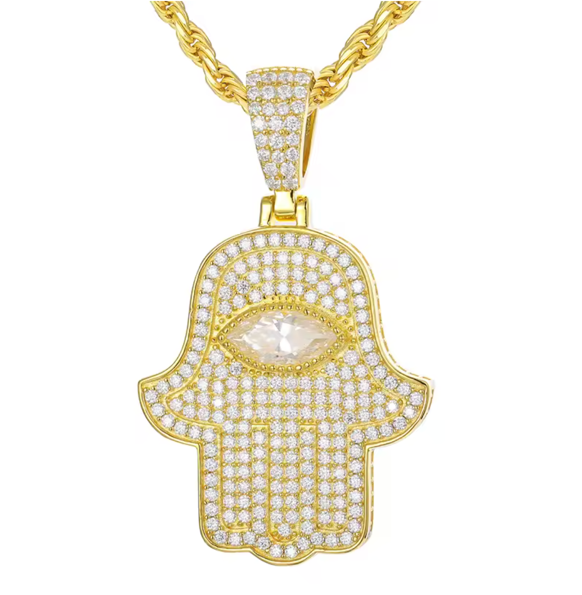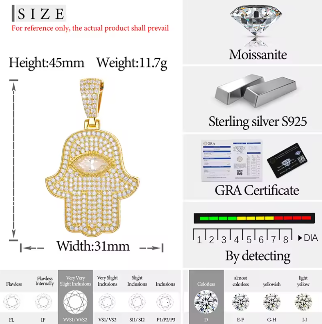 What is Moissanite? Moissanite is a naturally occurring mineral. It sparkles more than a real Diamond and will pass the Diamond Test! Crafted to Last. Whether you're looking for a gift or a personal treat, Hamza Moissanite Pendant will add the perfect touch of bling to daily outfits!