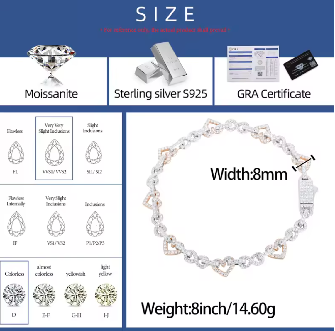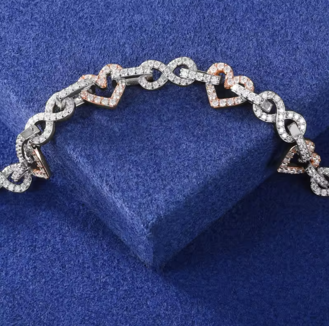 What is Moissanite? Moissanite is a naturally occurring mineral. It sparkles more than a real Diamond and will pass the Diamond Test! Crafted to Last. Whether you're looking for a gift or a personal treat, "Heart" Link Moissanite Bracelet will add the perfect touch of bling to daily outfits!
