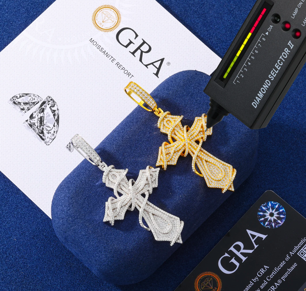 What is Moissanite? Moissanite is a naturally occurring mineral. It sparkles more than a real Diamond and will pass the Diamond Test! Crafted to Last. Whether you're looking for a gift or a personal treat, Ribbon Cross Moissanite Pendant will add the perfect touch of bling to daily outfits!