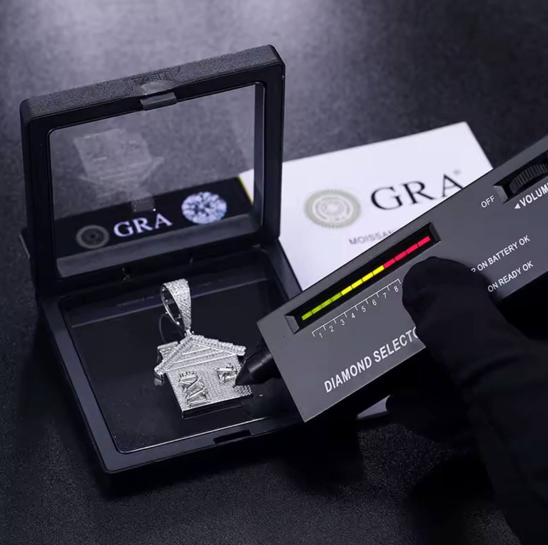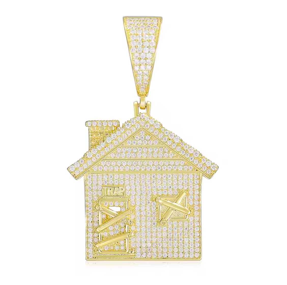 What is Moissanite? Moissanite is a naturally occurring mineral. It sparkles more than a real Diamond and will pass the Diamond Test! Crafted to Last. Whether you're looking for a gift or a personal treat, Our Trap House Moissantie Pendant will add the perfect touch of bling to daily outfits!